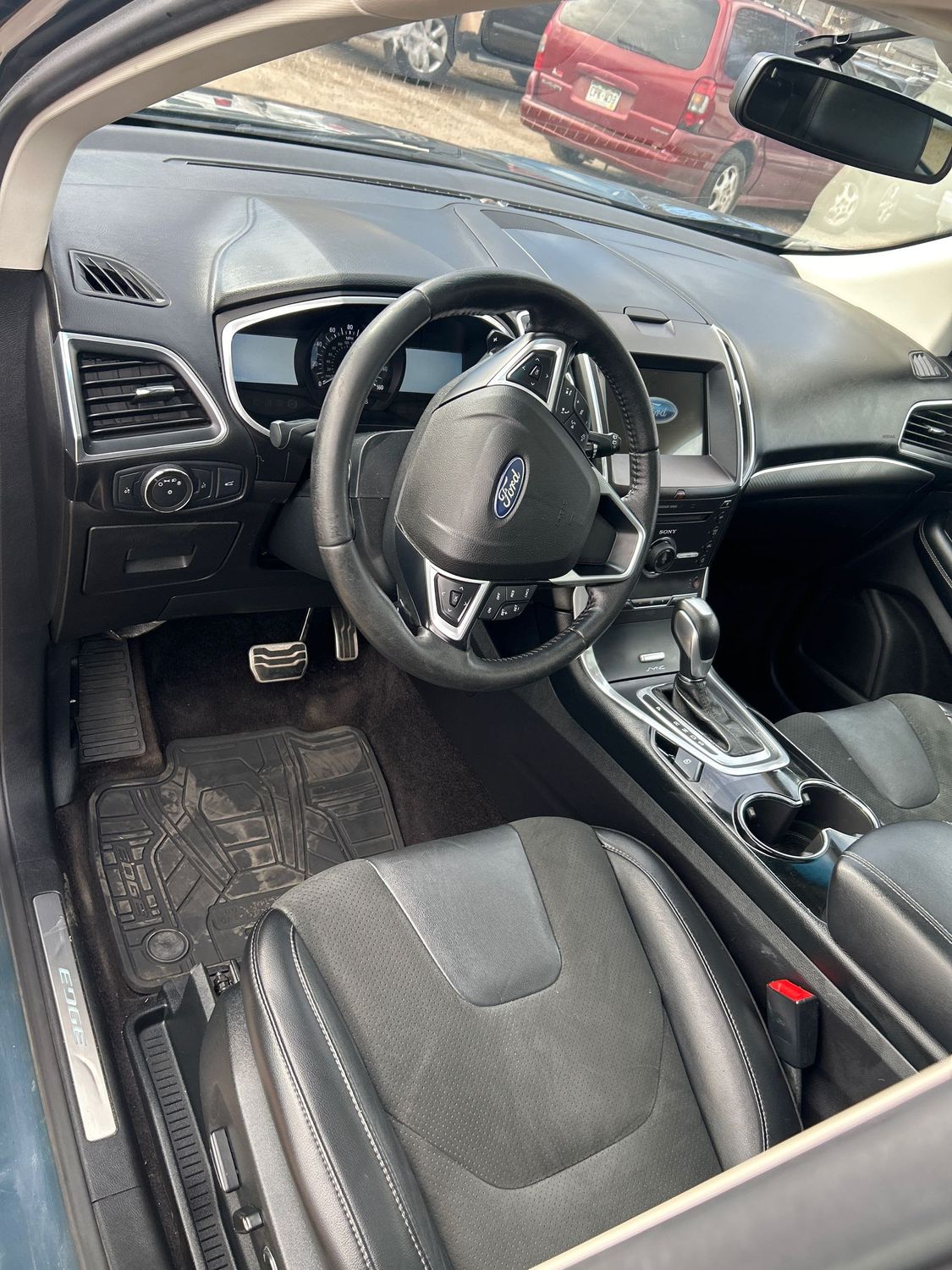 Rear seat upholstery: Simulated suede and leather rear seat upholstery